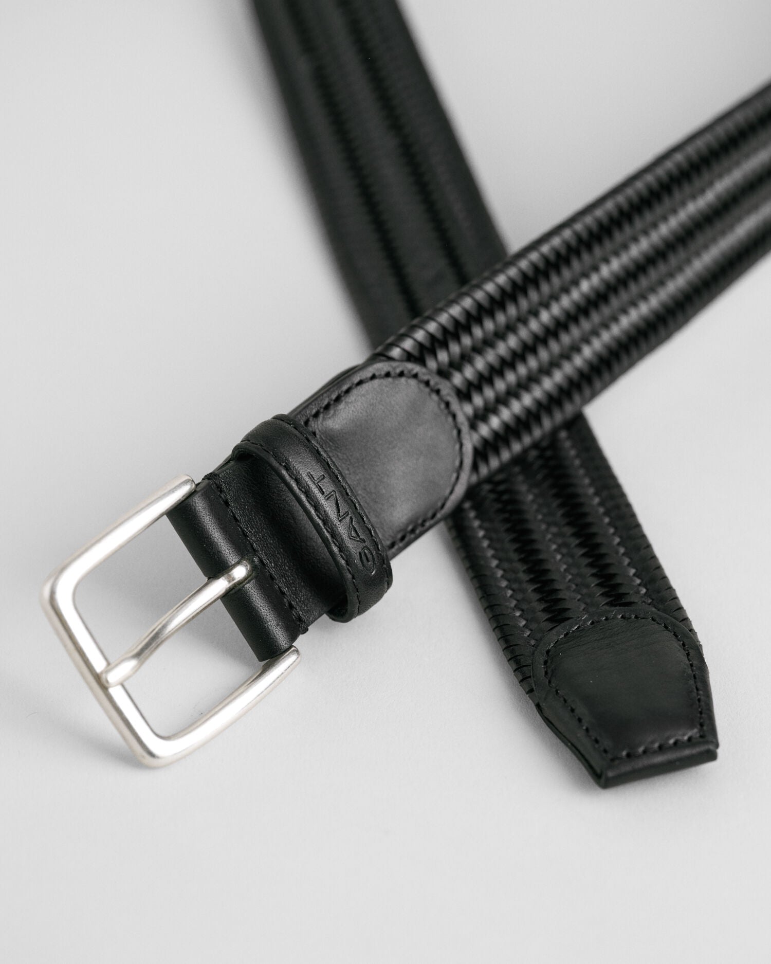 Fashioned out of bonded leather, this braided belt is crafted for a regular fit. The design features a sleek silver-tone buckle and a debossed logo on the belt keeper for a premium touch.