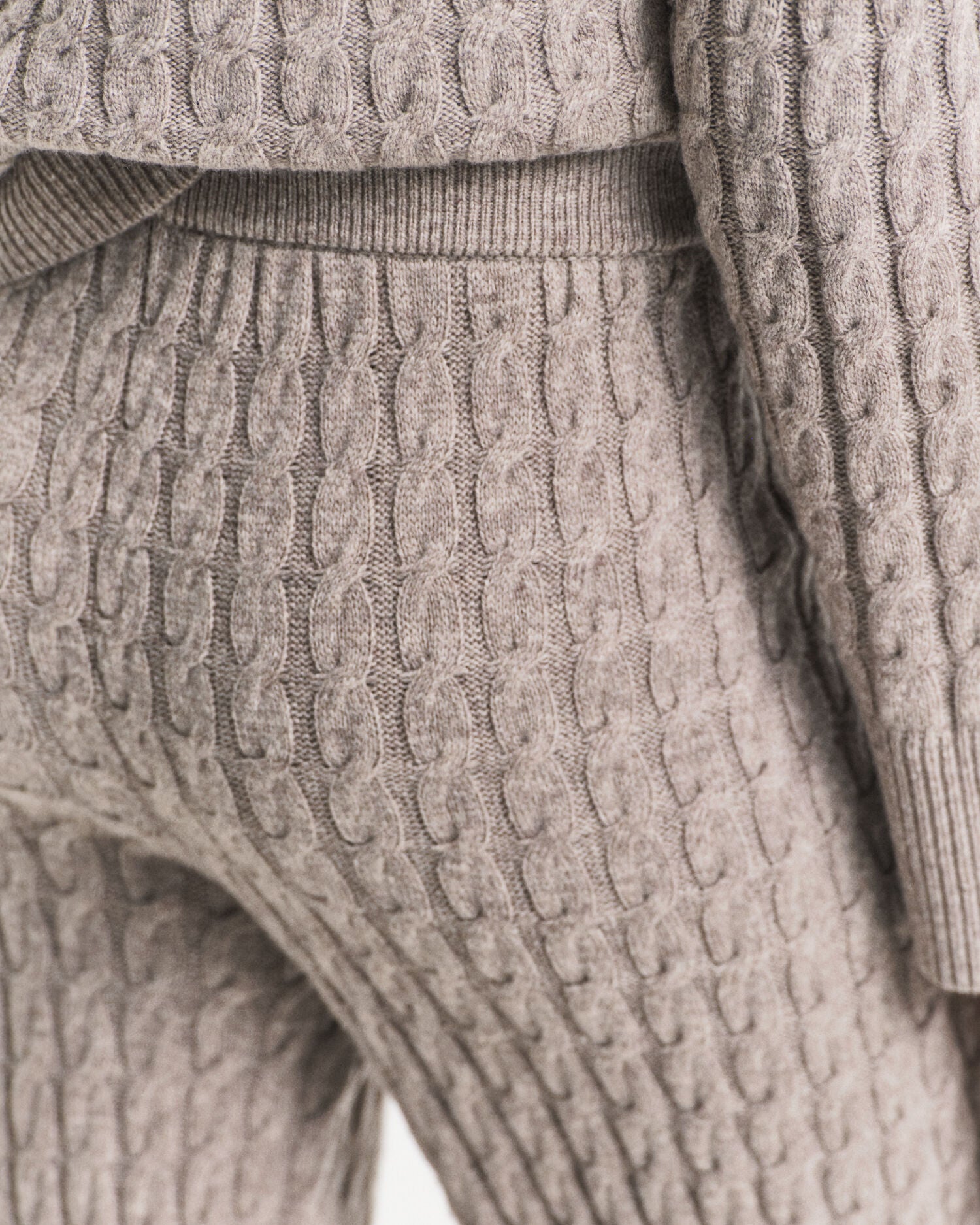 These knitted pants are crafted with a regular fit, mid-rise waist and an all-over cable knit pattern. Made from a super soft wool and cashmere blend, they feature knitted drawstrings and a logo embroidery below the ribbed waistband.