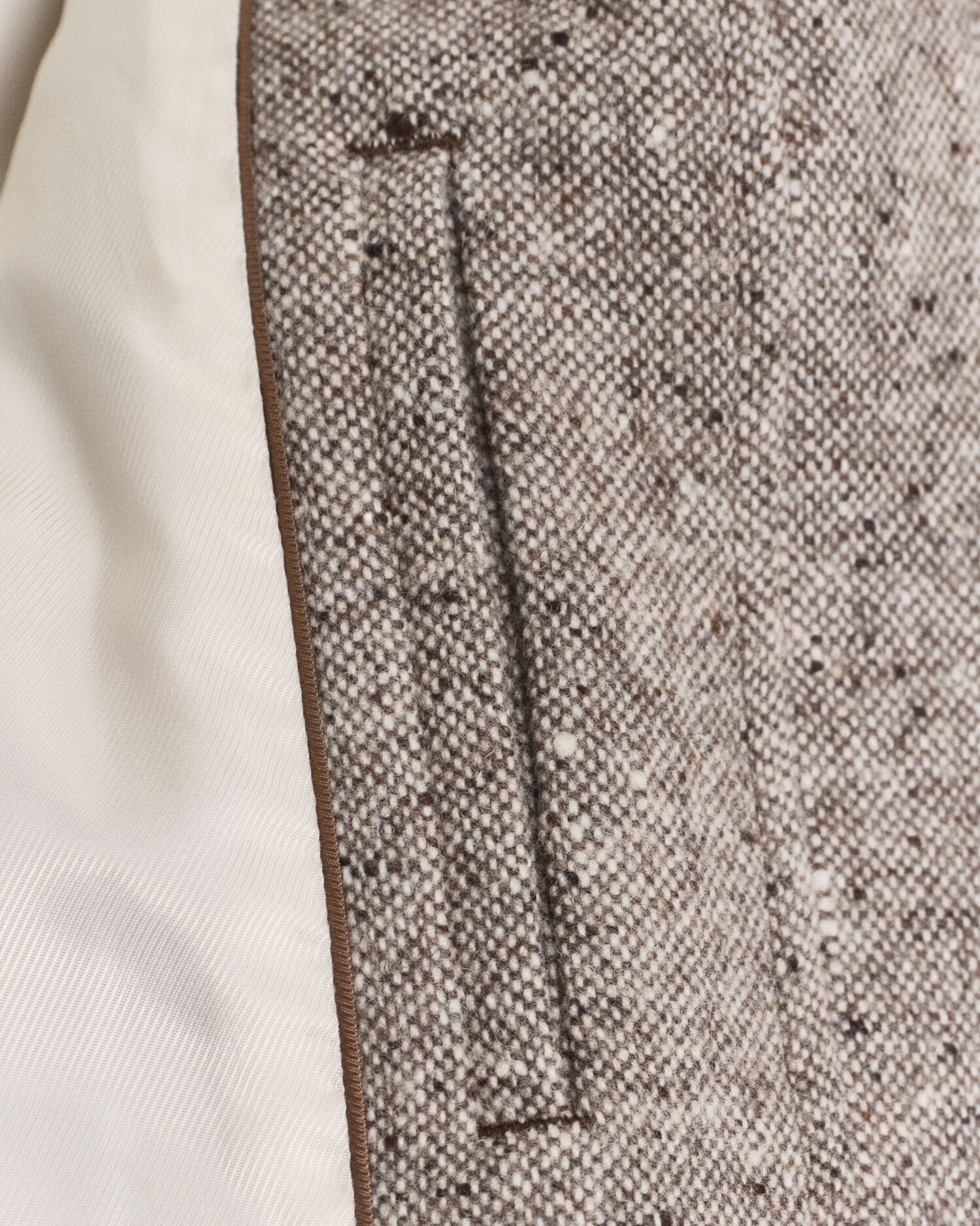 Modeled on rugged workwear, this blouson jacket is crafted from authentic wool with flecked yarns and fully lined in a blend of certified viscose and recycled polyester. Cut for a regular fit that sits at the hips, this jacket's shirt-style collar introduces a textured contrast to the garment. Other design details include front side seam pockets, an interior pocket and an elastic hem at the back waistband. This jacket closes with a hidden double-ended zip at the front placket, plus invisible snap buttons at the front and at the sleeve cuffs.