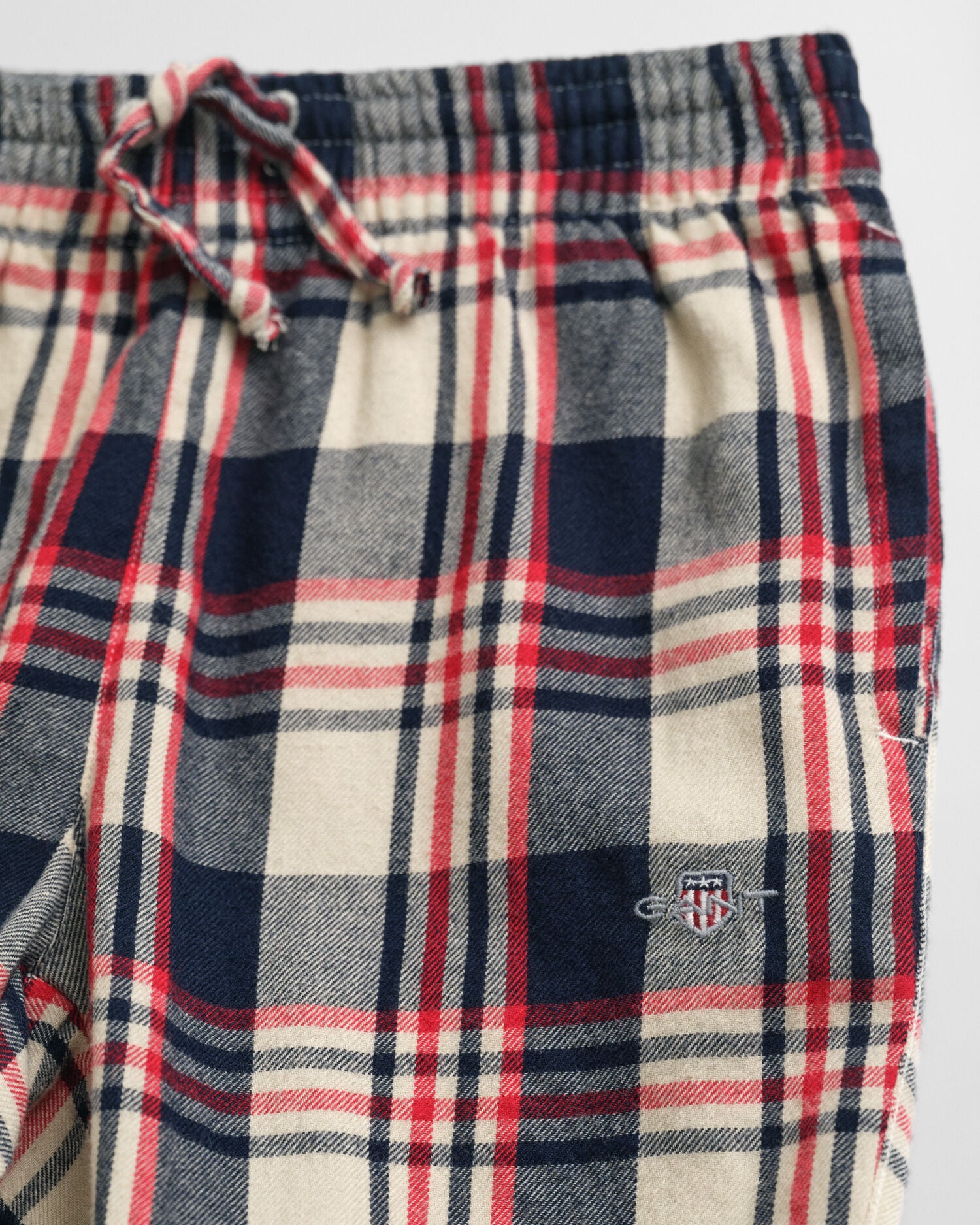 Crafted in cotton flannel for a soft feel, these unisex pajama pants for kids are patterned with a multicolored check. Cut for a relaxed fit in a pull-on design, they feature an elasticated, drawstring waistband, side pockets and an Archive Shield graphic embroidered at the left leg.
