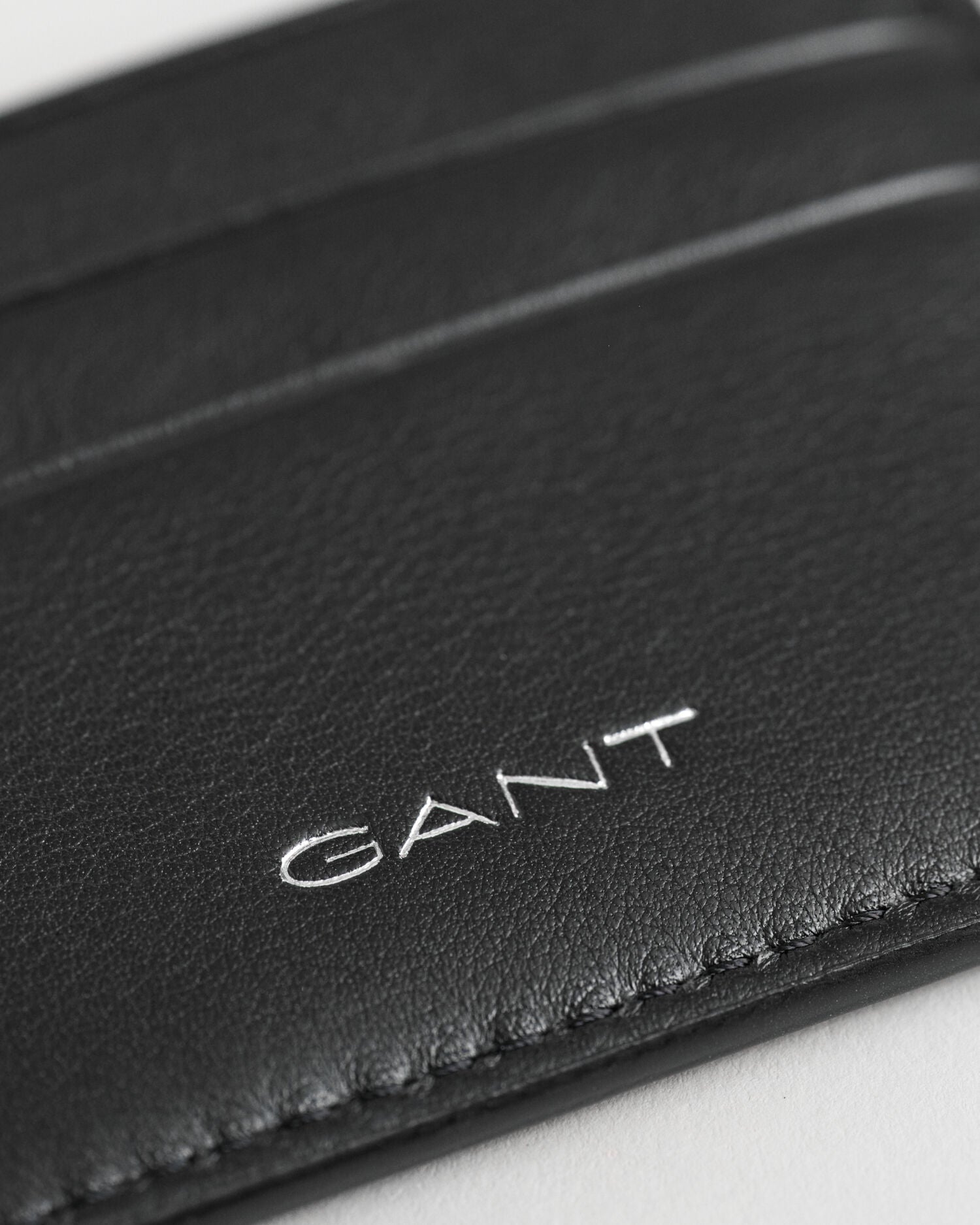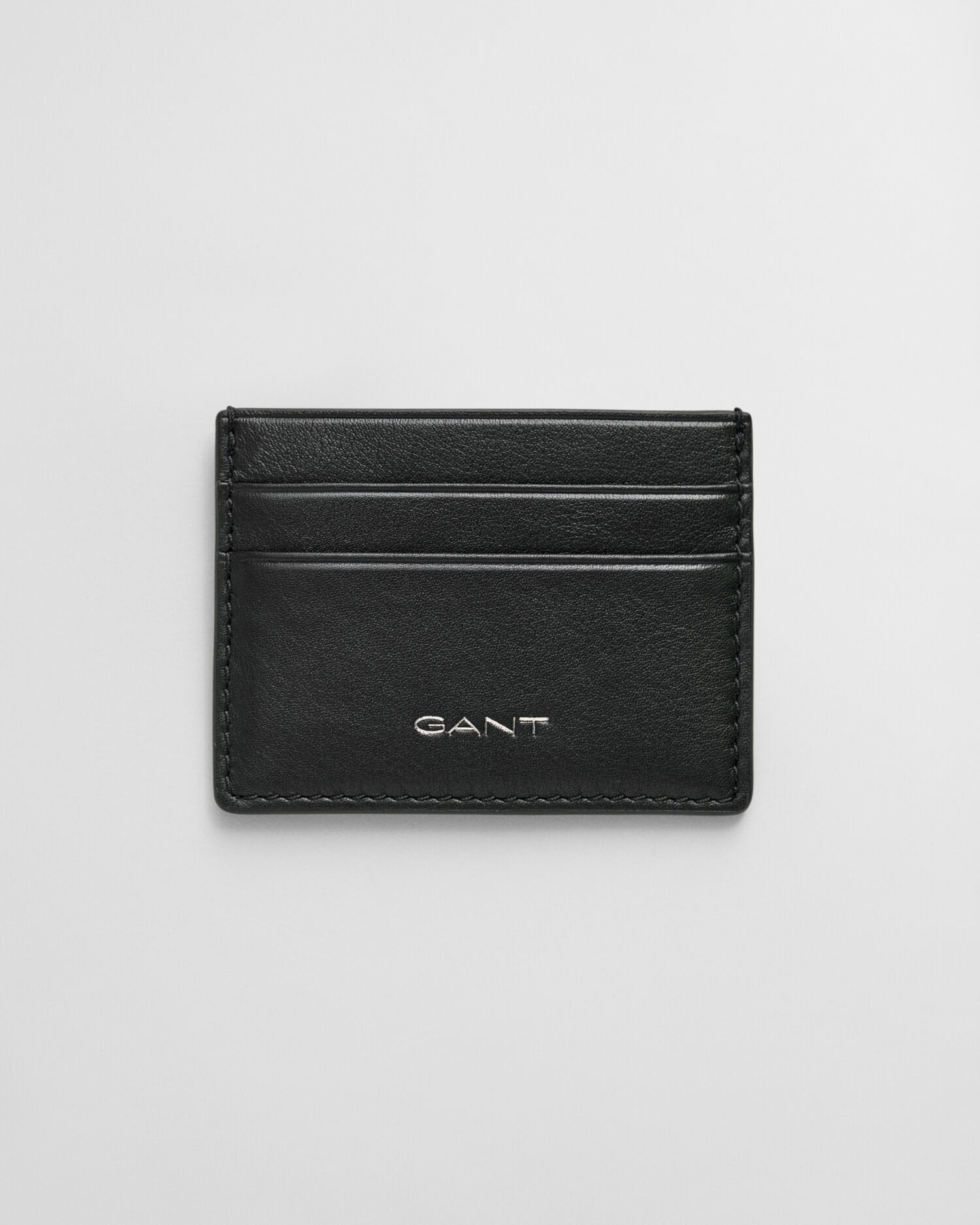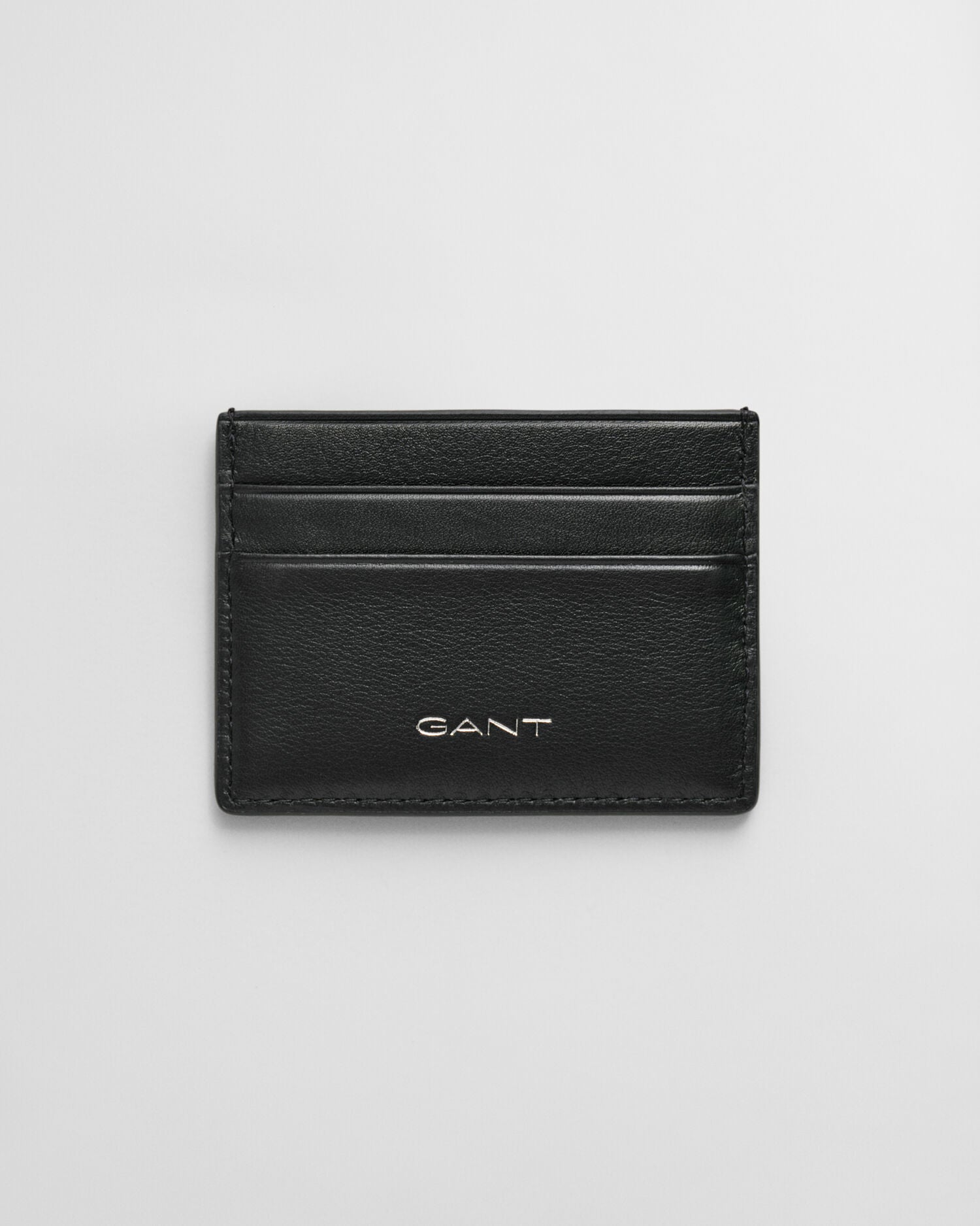 A compact card holder, crafted in 100% premium leather. It features card compartments at the front, middle and back side and is embellished with a debossed silver foil logo.