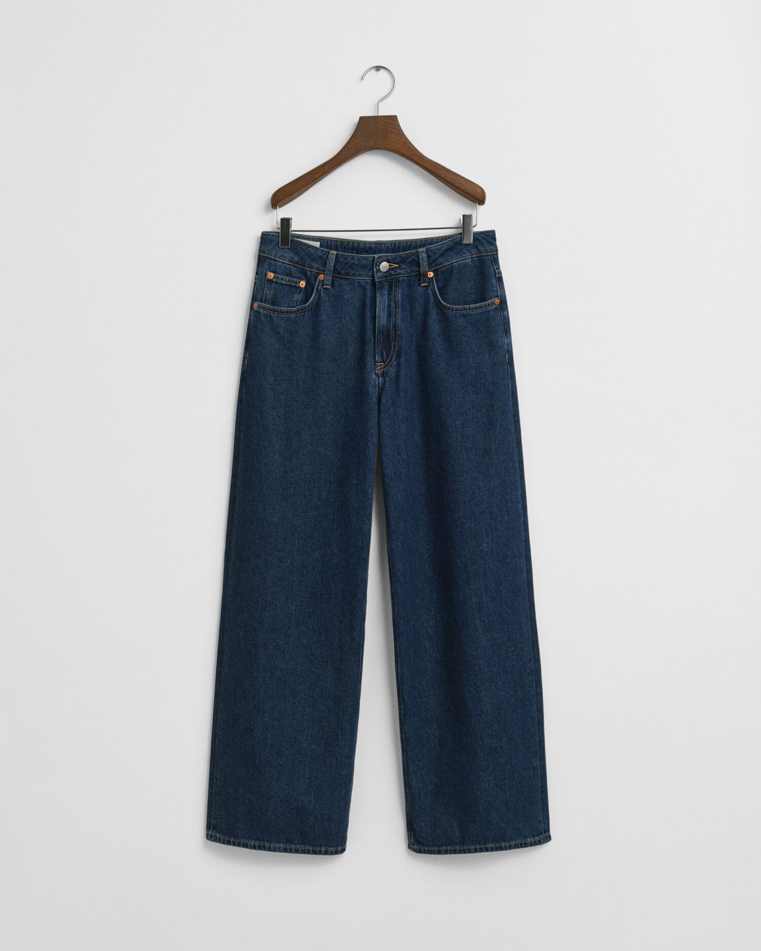 Crafted from a soft, lightweight and rigid cotton, these jeans sit low on the waist in a loose fit. Designed for a relaxed-fitting feel over the hips, they have a wide-leg shape that feels ultra cool and laidback. Featuring a mid-indigo wash with expression and tinting, these jeans are complete with a fly front opening and distinct branding on the buttons, rivets and back waistband label.