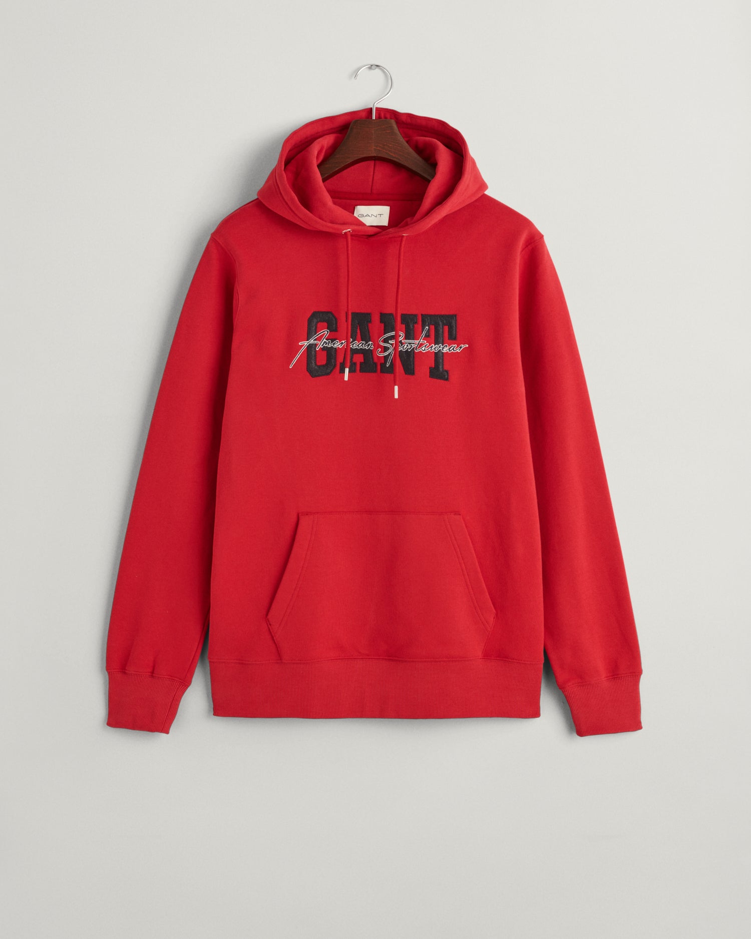 Featuring a arch script graphic embroidered at the chest, this hoodie is crafted from 100% cotton and cut in a regular fit. Fashioned with a brushed exterior for a soft hand-feel, the design includes a kangaroo pocket, silver drawstring eyelets, and ribbed detailing at the sleeve cuffs and hem.