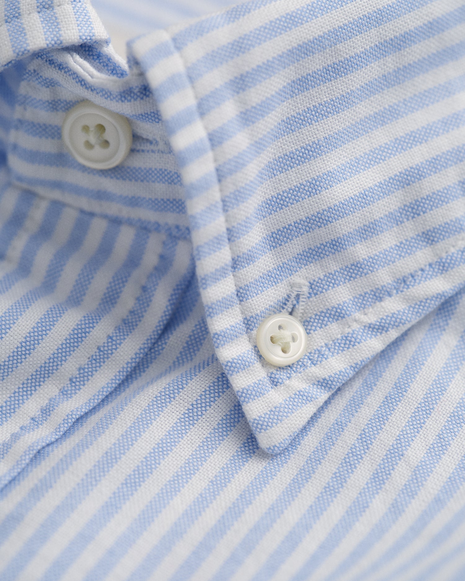 Featuring an archive-inspired shield graphic with retro appeal, this cotton Oxford shirt features a regular fit and a classic Banker Stripe throughout the garment. Detailed with a button-down collar and a curved hem, this shirt is a preppy essential for any business-casual wardrobe.