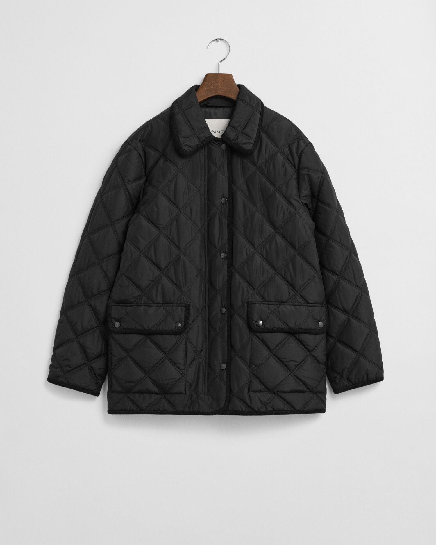 This quilted jacket uses recycled fabrics throughout the whole garment. It's padded and lined with recycled synthetics for a light insulation, and made from a quilted shell with a water-repellent quality. It has a regular fit that sits at hip length and is detailed with a shirt collar, lower patch pockets, and a zipped interior pocket. It has a row of branded snap buttons and a zip at the front with a placket hiding the zip for a cleaner, streamlined look. This jacket is detailed with contrast corduroy trims at the collar, pockets and cuffs, plus a branded jacquard logo lining. This coat features a Durable Water Repellent (DWR) treatment which will help to shed water in light weather conditions.