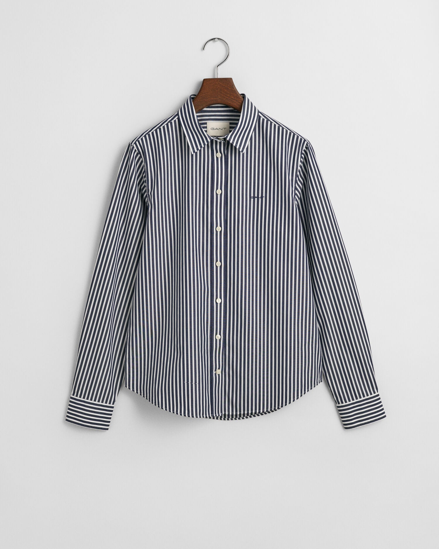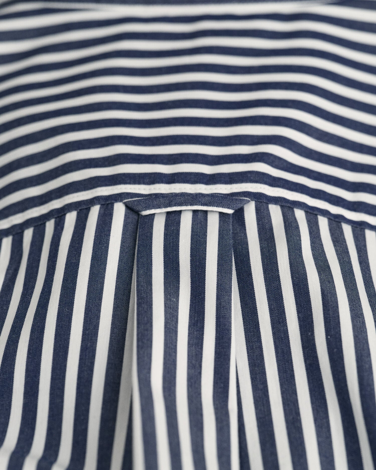 Featuring yarn-dyed stripes on crisp cotton poplin, this regular fit shirt is the perfect casual piece. Details include a point collar, curved hem, embroidery at the chest and our signature box pleat with a locker loop at the back.