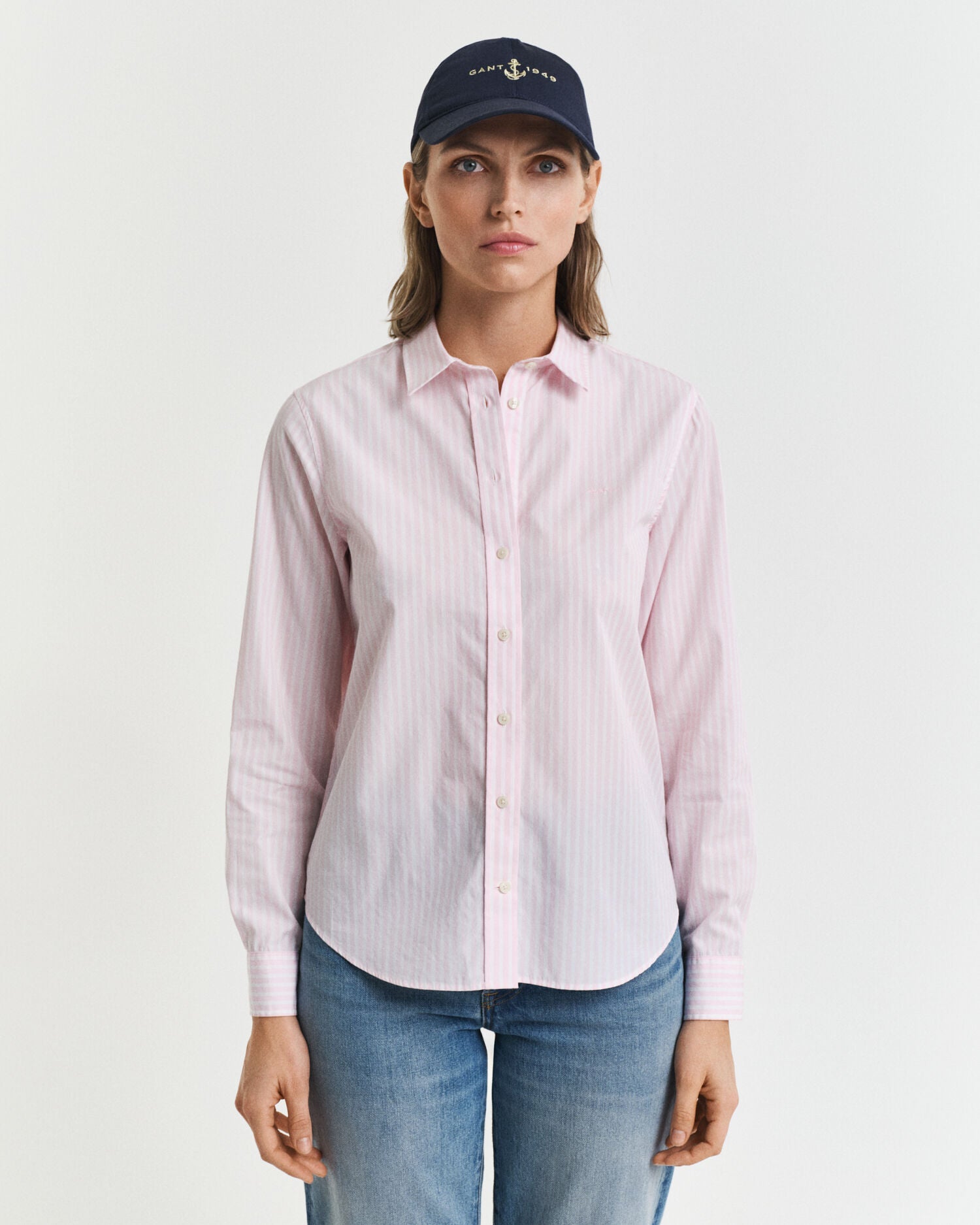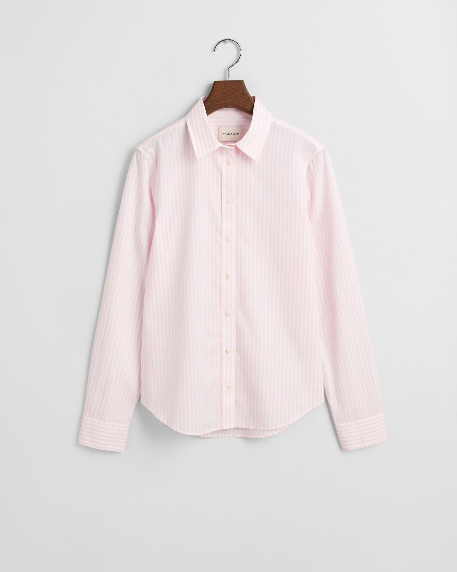 Featuring yarn-dyed stripes on crisp cotton poplin, this regular fit shirt is the perfect casual piece. Details include a point collar, curved hem, embroidery at the chest and our signature box pleat with a locker loop at the back.