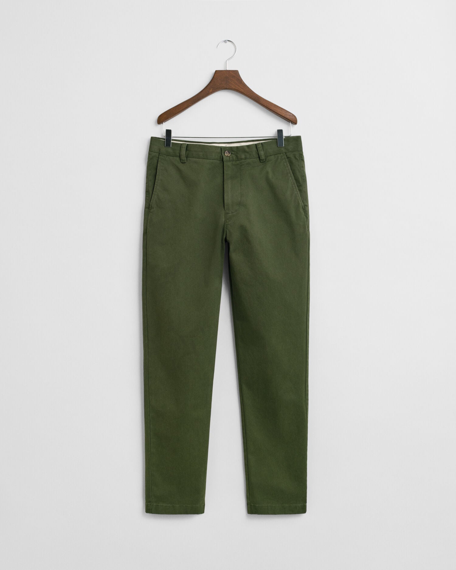 A signature silhouette, this chino features a mid-rise waist and a fit that's slim over the hip and regular from the knee down to the leg. They are crafted from a medium-weight cotton twill that's been brushed for a softer feel and designed with stretch for added comfort. These chinos are detailed with slanted front pockets, back welt pockets and a front button closure.