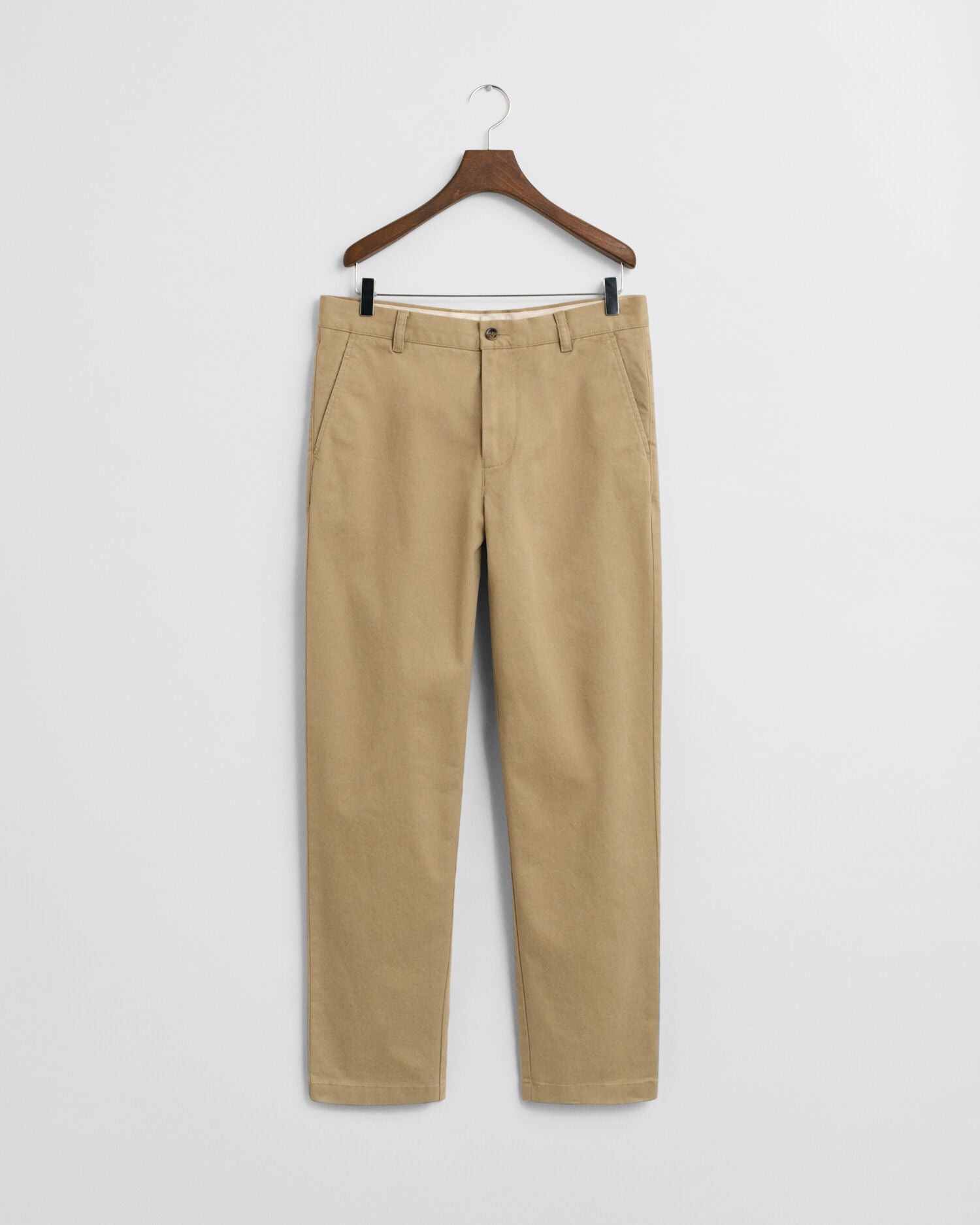A signature silhouette, this chino features a mid-rise waist and a fit that's slim over the hip and regular from the knee down to the leg. They are crafted from a medium-weight cotton twill that's been brushed for a softer feel and designed with stretch for added comfort. These chinos are detailed with slanted front pockets, back welt pockets and a front button closure.