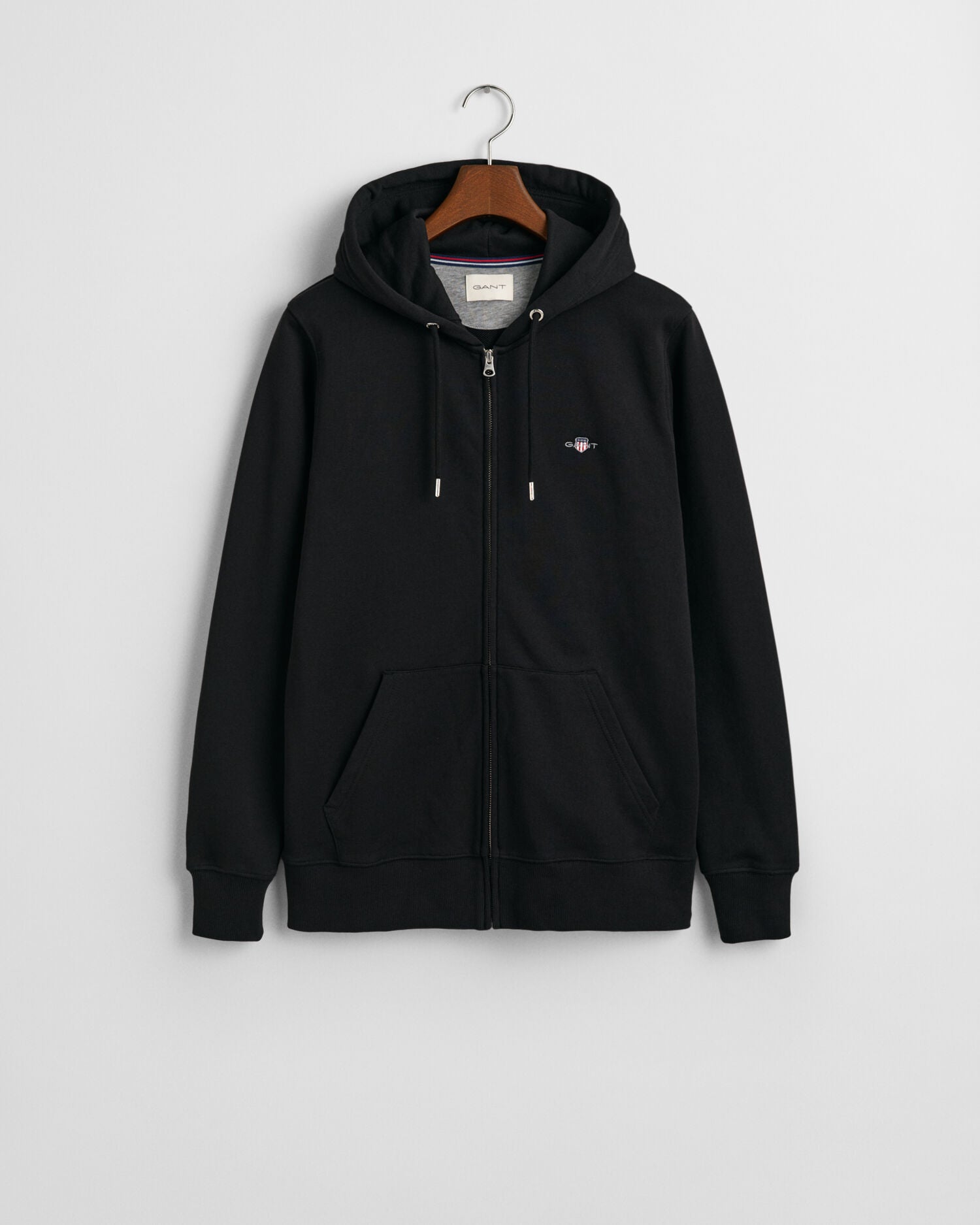 Featuring a small-scale shield graphic embroidered at the chest, this hoodie features full-zip closure and a kangaroo pocket at the front.