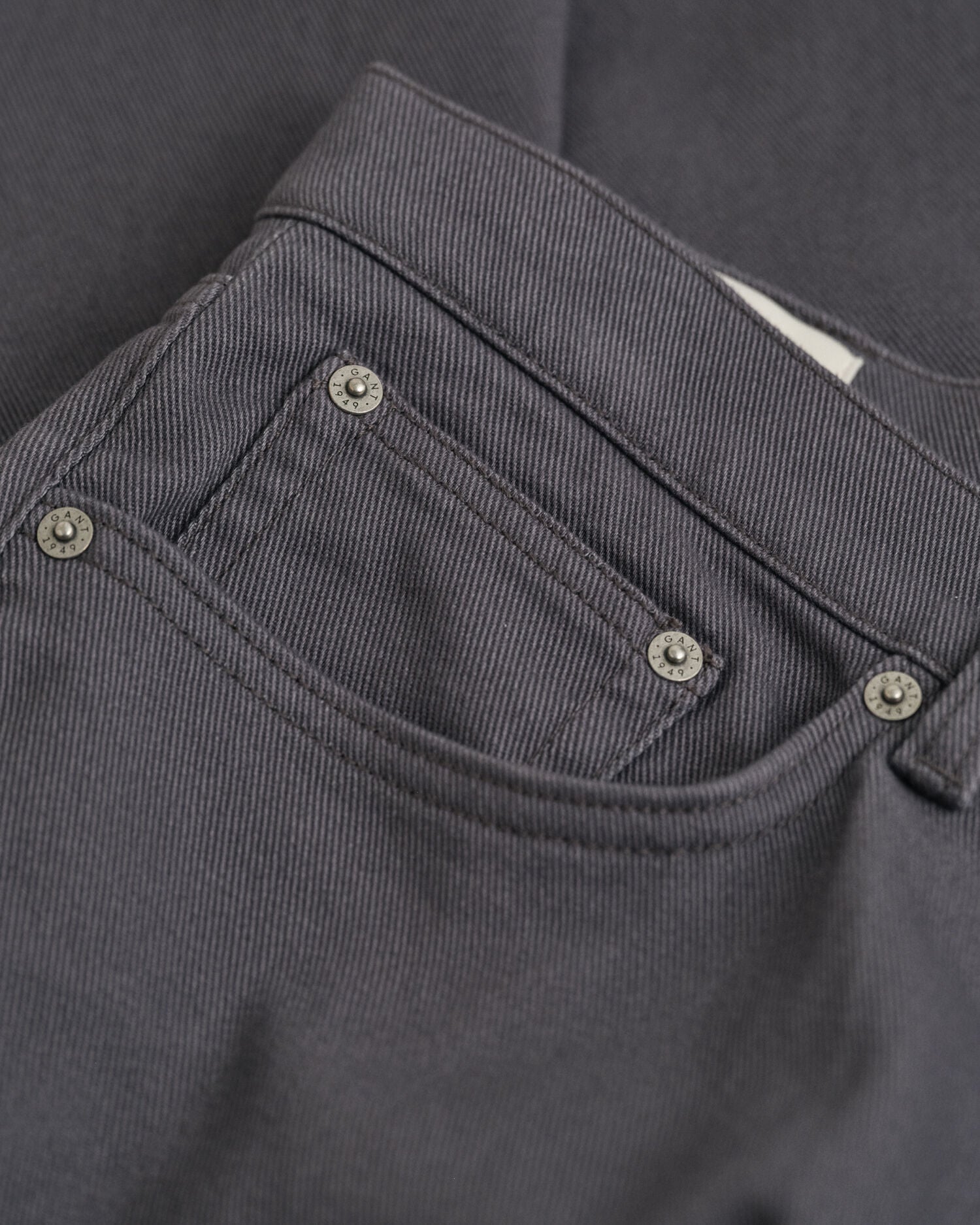 Following a classic and timeless style, this jean is cut with a mid-rise waist and a slim fit. Crafted from a soft brushed twill fabric with comfort stretch, these jeans have a 5-pocket design, branded shank buttons and rivets, a zip fly and a leather logo patch at the back.