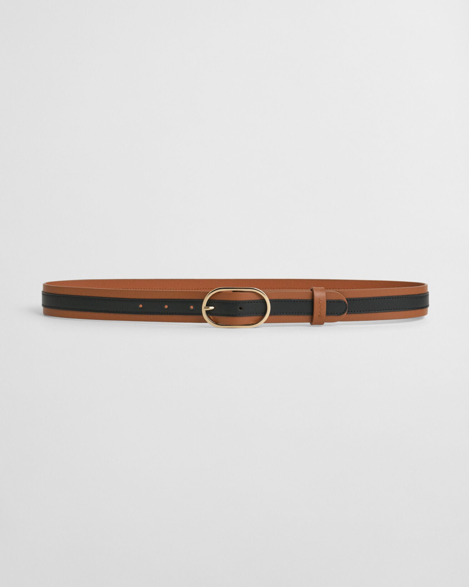 Elevated with a striped design, this leather belt is a closet staple. It's been crafted in 100% leather with an oval-shaped metal buckle and a debossed logo on the leather keeper.