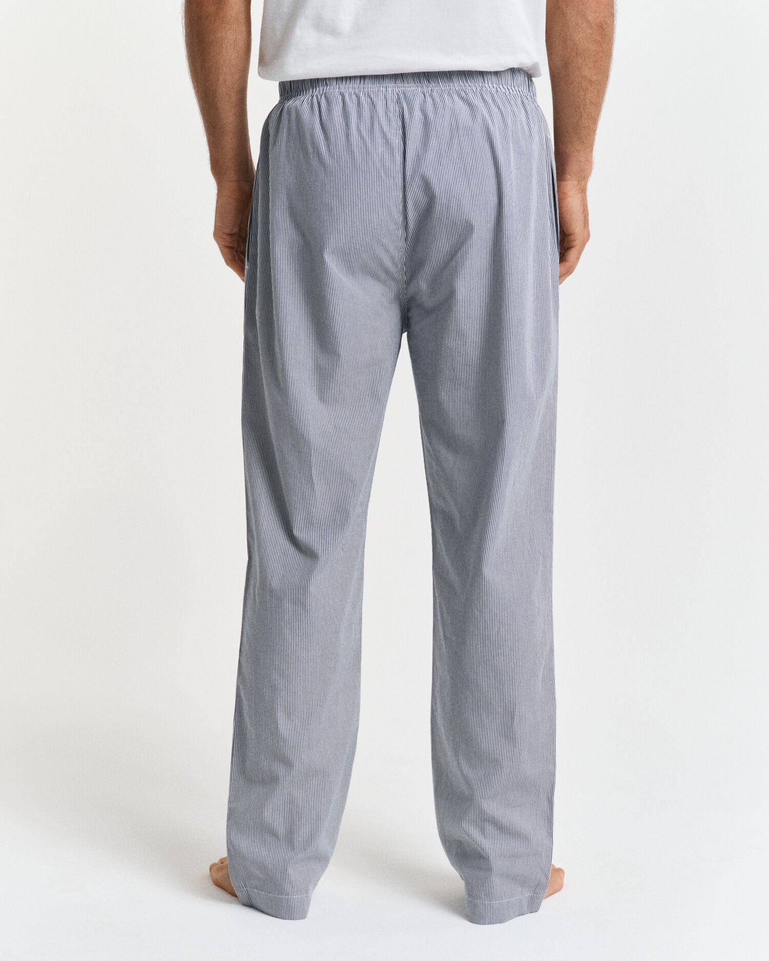 Crafted from washed cotton poplin for a soft feel, these pajama pants are patterned with a woven seasonal stripe. Cut for a regular fit, they feature side pockets and a drawstring elastic waistband.