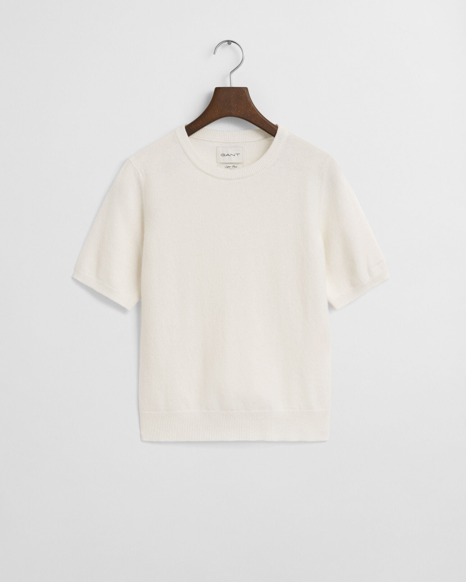 Superfine Lambswool Short Sleeve Crew Neck Sweater