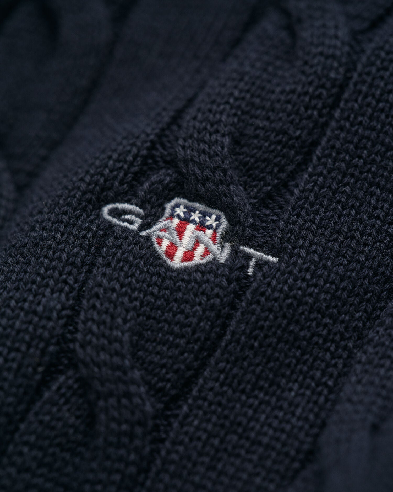 Crafted in soft, breathable cotton, this sweater for teens is a knitwear essential. Made for a regular, unisex fit and designed in an all-over cable knit structure, it features a half-zip collar and our iconic shield embroidered at the chest.
