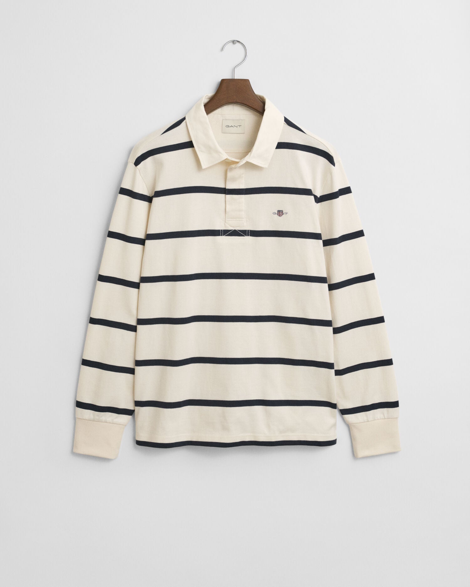 A preppy icon with roots in rugby, the Heavy Rugger's collegiate-cool feel is perfect for almost any occasion. Cut for a regular fit and garment-washed for a soft handfeel, this iteration sports a yarn-dyed stripe design. Crafted from 100% cotton, it features all the classic detailing: a twill collar, ribbed cuffs, a stitched placket with branded rubber buttons and side hem slits. It is finished with our iconic shield graphic embroidered at the chest and our signature locker loop at the back.