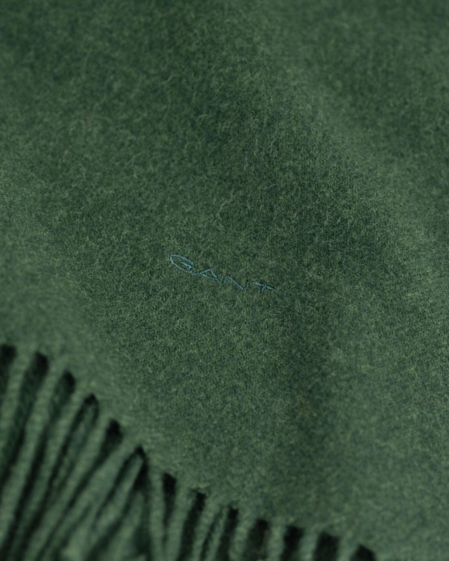 Crafted out of 100% wool, this unisex scarf features fringed edges and a tonal logo embroidered at the bottom.